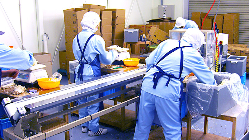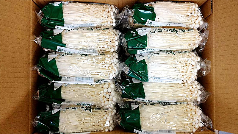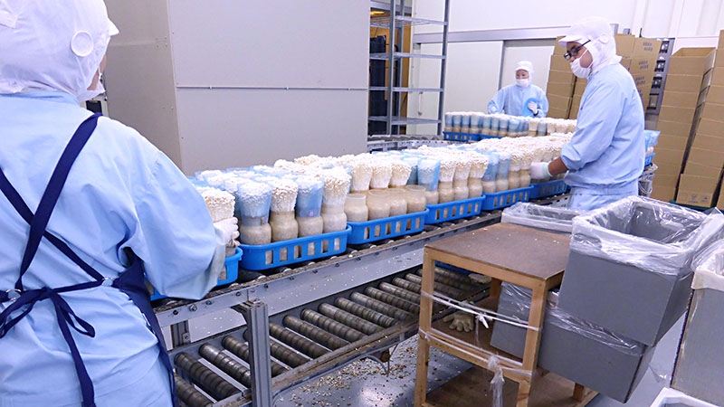 収穫したきのこは衛生管理に十分注意し、計量、包装、箱詰めを行います。